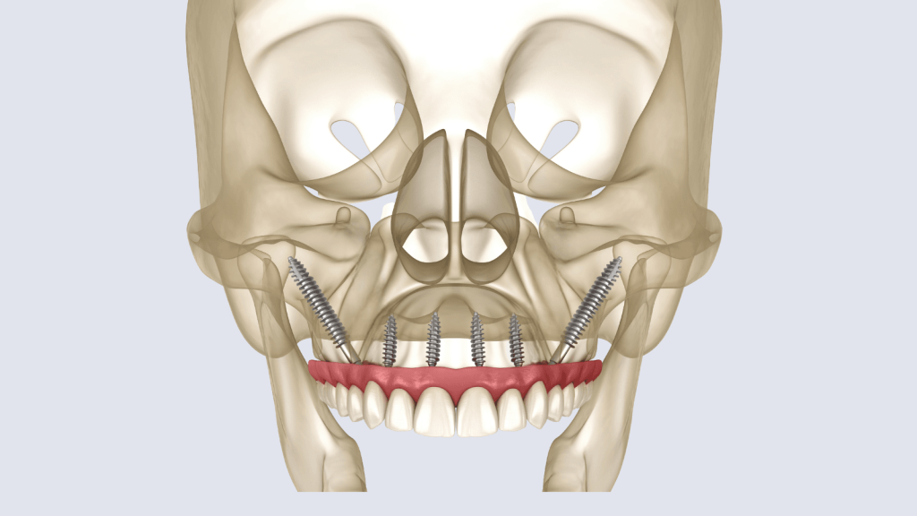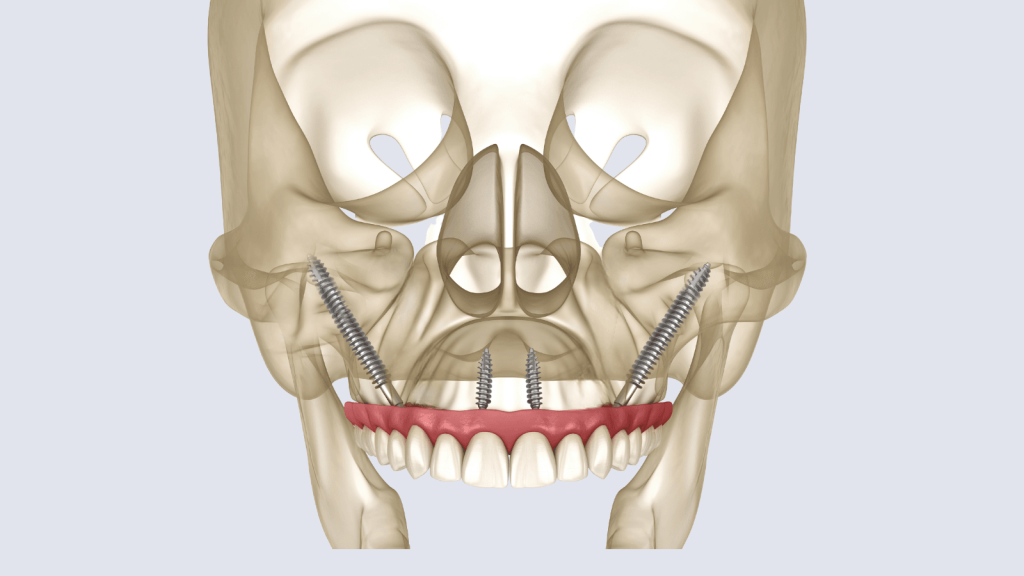 Dantură Fixă pe 2 Implanturi Zigomatice și 2 Implanturi Clasice